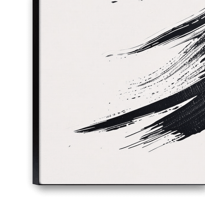 Dit unieke ontwerp toont een krachtige zwarte penseelstreek die een gevoel van beweging en dynamiek uitstraalt. Het contrast tussen de zwarte verf en de witte achtergrond benadrukt de eenvoud en kracht van minimalistisch design. Dit kunstwerk past perfect in moderne interieurs en voegt een vleugje abstractie en elegantie toe aan elke ruimte. De penseelstreek symboliseert de spontaniteit en energie van creativiteit, waardoor dit ontwerp niet alleen visueel aantrekkelijk is, maar ook een bron van inspiratie kan zijn. Ideaal voor kantoren of woonkamers waar een statement piece gewenst is dat tegelijkertijd rust en kracht uitstraalt.