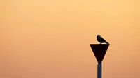 Zwarte vogel - het silhouet van een zwarte kraai in het avond avondlicht.