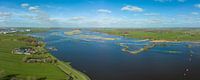 Hoge waterstand in de rivier het Zwarte Water bij de stad Hasselt in Overijssel, Nederland. De rivier overstroomt in de uiterwaarden na hevige regenval stroomopwaarts in Nederland en Duitsland tijdens de storm Eunice en Franklin in februari 2022.