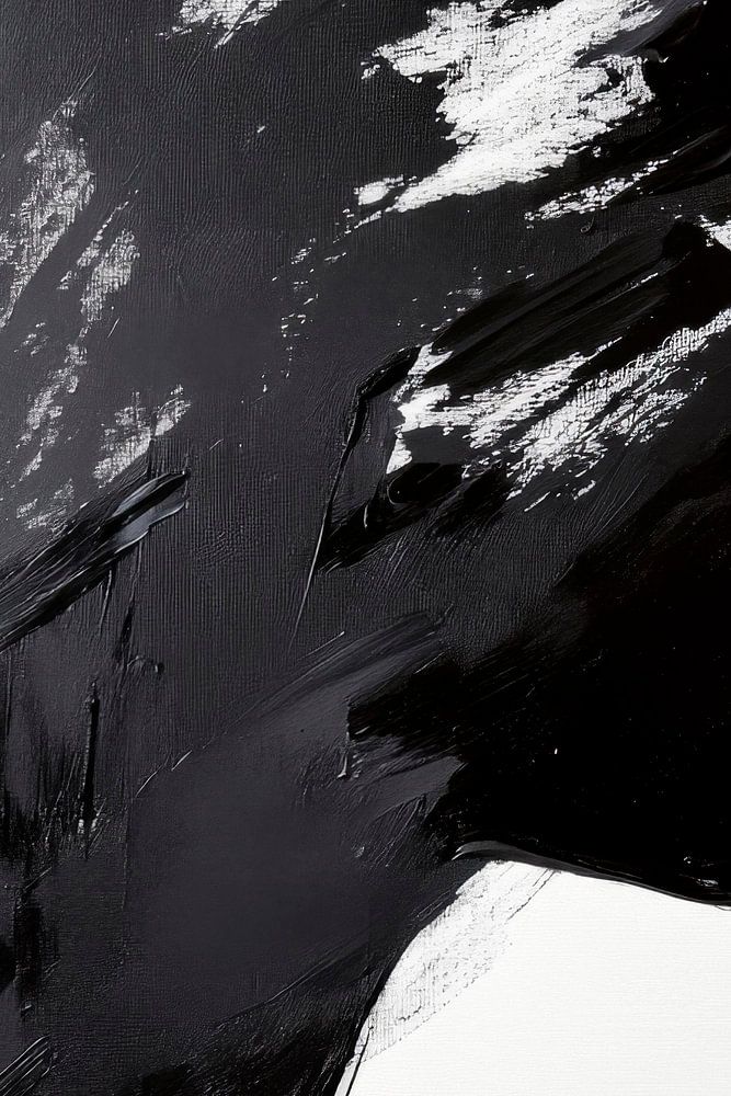 Een krachtige uitdrukking van beweging en emotie ontvouwt zich in levendige, dynamische penseelstreken. De silhouetachtige figuur lijkt uit te nodigen tot zowel rust als vertrek, terwijl de contrasterende zwarte en witte kleuren aanzetten tot een diepe reflectie over identiteit en innerlijke gedachten. Een artistiek spel tussen vorm en leegte.