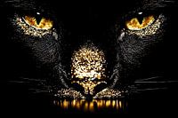 Dit indrukwekkende ontwerp toont een close-up van een zwarte kat, waarin de glinsterende details en de felgouden ogen direct de aandacht trekken. Het beeld combineert mysterie met elegantie en heeft een abstracte en surrealistische uitstraling. De sprankelende gouden accenten creëren een dynamisch contrast tegen de donkere achtergrond, wat dit kunstwerk perfect maakt voor een moderne inrichting. Het ontwerp straalt zowel luxe als intrige uit, waardoor het een unieke toevoeging is voor een woonkamer, slaapkamer of kantoor. Ideaal voor liefhebbers van dierenkunst en degenen die houden van een vleugje mystiek en moderniteit in hun ruimte.