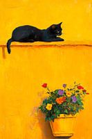 Zwarte kat tegen gele achtergrond van Poster Art Shop