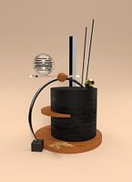Driedimensionaal abstract design. Zie ook Houten Bal, samen vormen ze een tweeluik in dezelfde kleurstelling. Komt goed tot zijn recht op plexiglas/acrylglas.
