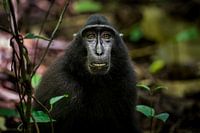 This unique an very small black monkey onley lives in Sulawesi in Indonesia. This portrait I shot in the protected area of the Tangkoko park. In the jungle you can find these macaque with their black fur and black faces. They almost look like humans with there square white teeth. This macaque seems to smile at you. They are very friendly and not shy for humans.