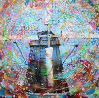 Schilderij van een zwarte molen.