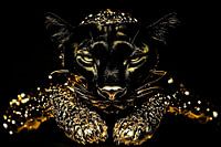 Dit indrukwekkende ontwerp toont een zwarte panter gehuld in gouden accenten, wat een dramatische en luxueuze uitstraling creëert. De diepe zwarttinten contrasteren prachtig met het glinsterende goud, wat een gevoel van kracht en elegantie oproept. Ideaal als blikvanger in een moderne of minimalistische ruimte, straalt deze afbeelding mysterie en exclusiviteit uit. Perfect voor liefhebbers van dieren en artistieke fotografie, en geschikt om een woonkamer, kantoor of slaapkamer een stijlvolle en unieke uitstraling te geven. Een absolute must-have voor iedereen die van opvallende decoraties houdt.