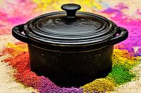 Dit unieke ontwerp combineert de robuuste uitstraling van een zwarte pan met een explosie van levendige kleuren op de achtergrond. Het contrast tussen de donkere pot en de sprankelende tinten creëert een dynamisch en eigentijds kunstwerk. Perfect voor liefhebbers van moderne, kleurrijke accenten in hun interieur. Dit kunstwerk trekt onmiddellijk de aandacht en is een prachtige aanvulling in zowel moderne keukens als stijlvolle woonkamers. Een gedurfde keuze die elke ruimte opfleurt en een speelse, maar verfijnde sfeer creëert.