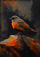 In dit clair-obscur schilderij gloeit de zwarte roodstaart met subtiele levendigheid, zijn oranjerode staartveren schitteren tegen lagen zachte duisternis. Schilderachtige streken vloeien over in rijke texturen, terwijl spatten van kleur stralen als vonken van vuurlicht en een dynamische energie aan het tafereel toevoegen. Het samenspel van schaduw en schittering maakt de vogel zowel delicaat als krachtig, en belichaamt de vluchtige schoonheid van de schemering. Dit expressieve stuk is ideaal voor kunstliefhebbers en verzamelaars en brengt een tijdloze en toch moderne elegantie in interieurs.