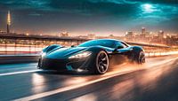 Koop de illustratie Zwarte sportwagen met zonsondergang van Mustafa Kurnaz op canvas, aluminium dibond, (ingelijste) fotoprint, behang en ArtFrame, op maat geprint in Fine-Art kwaliteit.