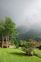 Terwijl we comfortabel van de middagzon genoten, vormden zich zwarte wolken in de bergen bij het stadje Grindelwald in Zwitserland. Het duurde niet lang voordat het flink ging regenen.