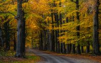 Een prachtige bosweg getooid in prachtige herfst kleuren.