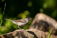Zwartkapje (Sylvia atricapilla) zittend op een steen in het voorjaar.