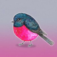 Een waterverf tekening van een schattige Zwartroze vliegenvanger. Dit Australische vogeltje is ook bekend als pink robin.