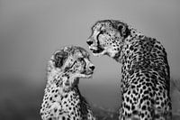 Twee cheetah (moeder met kind) poseren voor de foto.