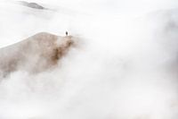 De zwaveldampen verplaatsten zich snel dus vanaf een hoog standpunt kon ik net de wandelaar vastleggen tussen de dampen en op de heuvel.