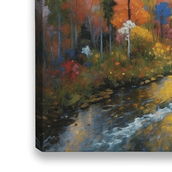 Dit kunstwerk, Zweeds Landschap Schilderij Rivier in Scandinavische Wildernis, is mijn ode aan de ruige en betoverende natuur van Zweden. Het werk is gebaseerd op een foto die ik zelf maakte langs de beroemde Wildernisroute, waar een krachtige rivier door ongerepte bossen en rotsen slingert.