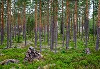 landschap in zweden een dennenbos in Smalland met bosbessen en rotsen op de voorgrond