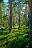 Zweeds bos met bosbessen struiken in de zomer in Smalland en groen