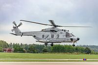 Een Zweedse NH-90 helikopter in actie tijdens de airshow op vliegbasis Malmen in Zweden op 28 augustus 2016.
