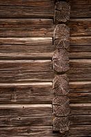 Zweedse houten muur van een schuur. Onbeschilderde bruine wand.