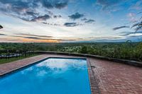 Dit zwembad kijkt uit over Kruger National Park en z'n wilde bewoners. Vanaf het moment dat de zon ondergaat komt de jungle tot leven. Foto is gemaakt in een lodge middenin het park.