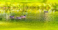 Koop de foto Zwemmende eendenfamilie van Achim Prill als print op canvas, aluminium dibond, (ingelijste) fotoprint, behang en ArtFrame. Voor jou op maat geprint in Fine-Art kwaliteit.