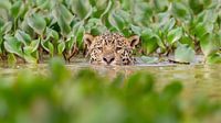 Koop de foto Zwemmende jaguar tussen de waterplanten van Hillebrand Breuker als print op canvas, aluminium dibond, (ingelijste) fotoprint, behang en ArtFrame. Voor jou op maat geprint in Fine-Art kwaliteit.