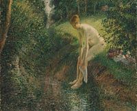 In de zomer van 1893 schreef Pissarro zijn zoon Lucien dat hij van plan was een serie doeken van naakt boerinnen zwemmen, ook al is hij voorzag moeilijkheden bij het betrekken van modellen op het platteland van Éragny. Geen werden voltooid tot 1894 en Pissarro bleef variaties te schilderen op het thema door middel van 1896. Dit beeld valt midden in het project.