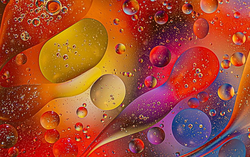 Alsof je kijkt naar een grensgebied tussen dag en nacht, waar energie zichtbaar wordt in haar meest speelse vorm. De bubbels lijken te zweven in een gewichtloze ruimte, verbonden door ritme, contrast en patronen die zich telkens opnieuw herscheppen.