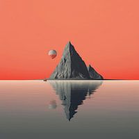 In deze betoverende afbeelding verrijst een majestueuze berg midden in de uitgestrekte zee. De kalme wateren weerspiegelen de berg met een bijna magisch effect. Naast de berg zweeft een kleurrijke luchtballon, die het landschap een speels en avontuurlijk tintje geeft.