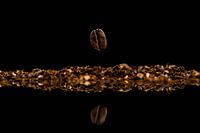 Koop de foto Zwevende koffieboon van Corrine Ponsen op canvas, aluminium dibond, (ingelijste) fotoprint, behang en ArtFrame, op maat geprint in Fine-Art kwaliteit.