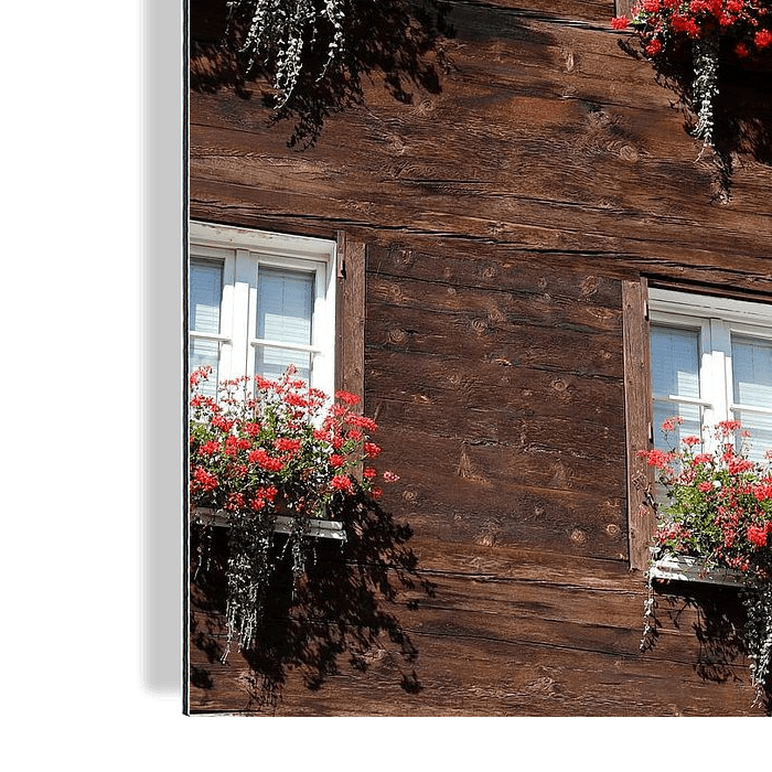 rode geraniums in bakken voor Zwitsers chalet in Zermatt Wallis