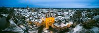 Zwolle Sassenpoort tijdens een koude winterochtend met sneeuw op de daken in de binnenstad van bovenaf gezien. De Sassenpoort werd gebouwd in de 14e eeuw, om precies te zijn tussen 1406 en 1409, en diende als een van de hoofdingangen van de vestingstad Zwolle. De poort werd gebouwd als onderdeel van de verdedigingsmuren van de stad en…