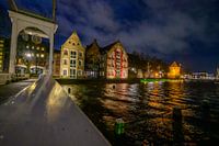 Nachtelijk uitzicht op de Thorbeckegracht in het centrum van Zwolle tijdens een donkere winternacht in Zwolle, Nederland bij de Pelserbrug.