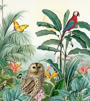 Ik heb dit werk gemaakt met de achterliggende bedoeling het in een kinderkamer terecht te laten komen. Want hoe leuk is het om samen met de kleine op safari-zoektocht te gaan, op zoek naar de dieren in deze tropische jungle?