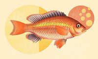 Veel geel en oranje in zachte tinten in deze vrolijke afbeelding van een vis.