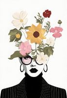 Een zomers, lenteachtig portret van een vrouw met bril, een uniek botanisch "fashion statement".