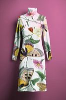 Een warme wollen jurk met botanische print, voor als de lentedagen nog een beetje frisjes zijn.