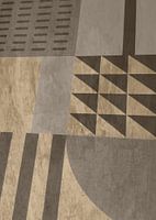 Compositie van geometrische vormen in zachte kleuren. Ze geven een helder en rustig beeld. Zorgvuldig neergezet. De vlakken hebben een genuanceerde textuur. Een werk dat helemaal past in een scandinavisch interieur of een basic Japandi interieur. De kleurschakering doet denken aan de kleuren van de retro jaren 70 decoratie.