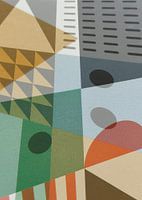 Compositie van geometrische vormen in zachte kleuren. Ze geven een helder en rustig beeld. Zorgvuldig neergezet.