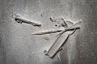 Lopend over het strand fotografeer ik graag wat de zee geeft en soms ook weer neemt. de structuren, de sfeer, het verhaal erachter maakt dat wrakhout, schelpen, stukken touw je meenemen in een andere wereld.