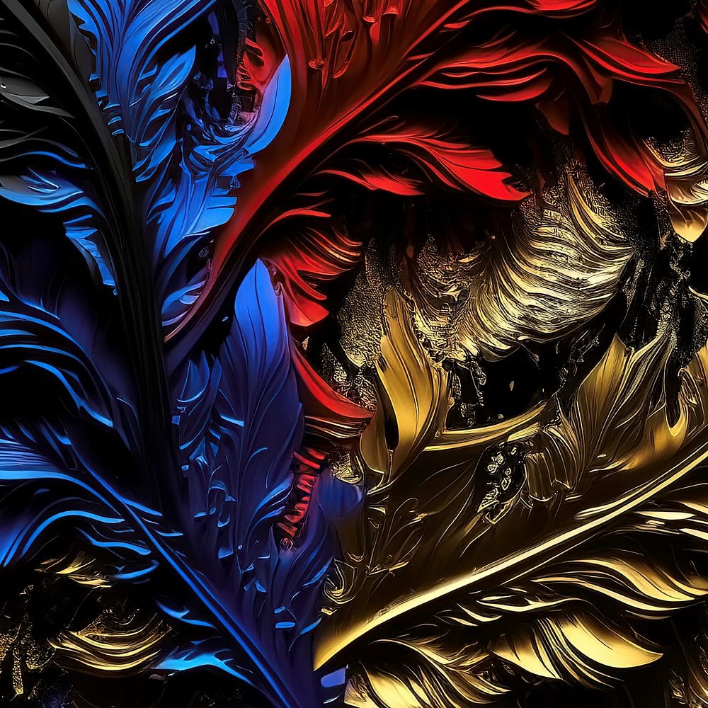 Koop dit abstracte kunstwerk abstract in goud rood en blauw. van Gelissen Artworks op canvas, aluminium dibond, (ingelijste) fotoprint, behang en ArtFrame, op maat geprint in Fine-Art kwaliteit.