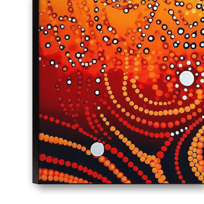 Deze boeiende serie kunst in Australische Aboriginal-stijl is een diep eerbetoon aan het rijke culturele tapijt en de eeuwenoude verteltradities van inheemse gemeenschappen. Door gebruik te maken van de iconische stippenschildertechniek weeft elk stuk op ingewikkelde wijze een complex verhaal samen dat een eerbetoon is aan de Dreamtime, het mythische rijk waar voorouderlijke geesten de wereld vormgeven. De doeken barsten van de caleidoscoop van aardetinten, die doen denken aan de ruige landschappen van de Australische outback, terwijl ingewikkelde patronen en symbolen de kijkers uitnodigen om dieper in te gaan op de spirituele en culturele dimensies van het werk. Geworteld in een eerbied voor het land en zijn heilige geschiedenis, biedt deze serie niet alleen visueel genot, maar ook een verrijkende, educatieve ervaring die de kloof tussen oude wijsheid en hedendaagse kunst overbrugt.