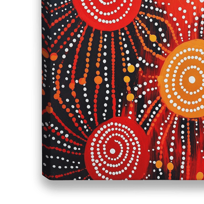 Deze boeiende serie kunst in Australische Aboriginal-stijl is een diep eerbetoon aan het rijke culturele tapijt en de eeuwenoude verteltradities van inheemse gemeenschappen. Door gebruik te maken van de iconische stippenschildertechniek weeft elk stuk op ingewikkelde wijze een complex verhaal samen dat een eerbetoon is aan de Dreamtime,…