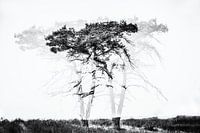 Abstracte, minimalistische foto van bomen in de heide.