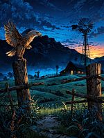 Koop de illustratie adelaar in dorp van Giandra Safaraz als print op canvas, aluminium dibond, (ingelijste) fotoprint, behang en ArtFrame. Voor jou op maat geprint in Fine-Art kwaliteit.