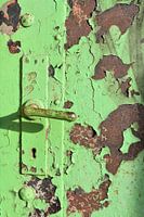 afbrokkelende groene deur van Heiko Kueverling
