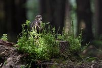 Een zeer jonge buizerd, net uitgevlogen, zit op een pas uitgelopen boomstronk in het bos en hoopt op voedsel van de volwassen vogels. Een beetje zonlicht dat door de omringende bomen direct op het frisse groen valt, brengt wat kleur in het beeld. De opname overtuigt met rijke details, natuurlijke kleuren, een spannende lichtsituatie met…