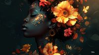 Koop dit bloemen kunstwerk afrikaanse vrouw met bloemen van Gelissen Artworks op canvas, aluminium dibond, (ingelijste) fotoprint, behang en ArtFrame, op maat geprint in Fine-Art kwaliteit.