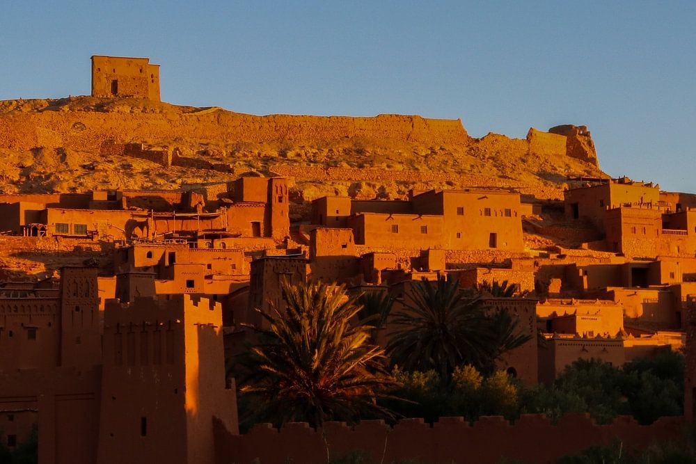 Het stadje Aït-Ben-Haddou waar de bekende film 'gladiator' is opgenomen. Deze foto is getrokken bij de zonsopkomst waarbij het stadje de eerste zonnestralen vat.